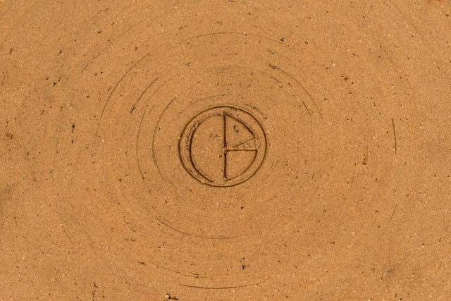 Clyde Burt ceramic charger in glazed stoneware with incised image. Signature to underside: [CB]
