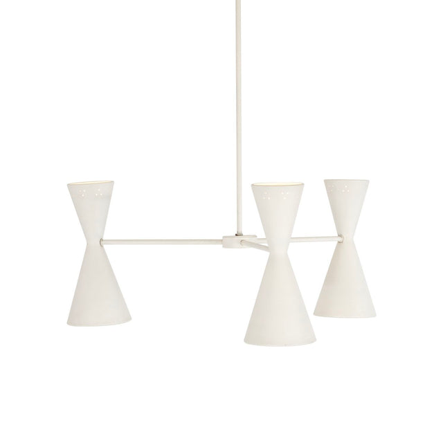 Stilnovo Style Three Arm Chandelier enameled white finish with 3 perforated housings with up and down lighting.